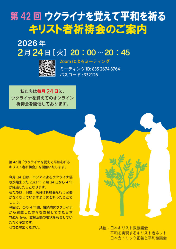 ロシア侵攻から4年 平和願い毎月祈祷会 ロシアによるウクライナ侵攻が始まって、2月24日で4年を迎えた。この4年間、毎月24日にウクライナを思い、教派を超え...