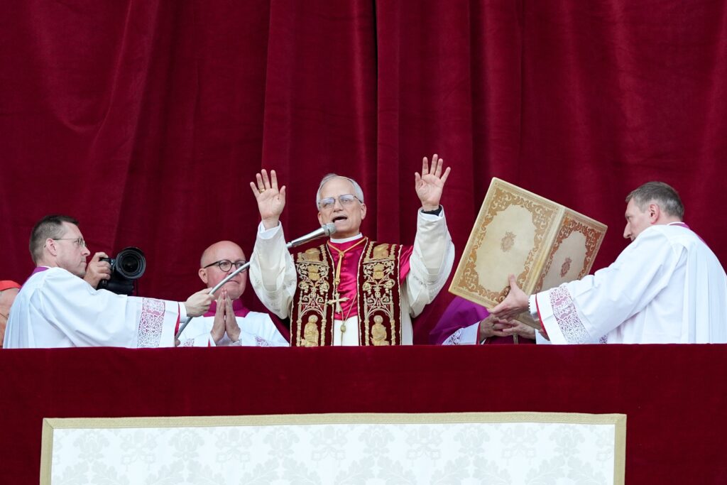 その20分後、新教皇レオ14世はバルコニーに姿を現し、白い教皇のカソックと赤いマッゼッタ(ケープ)、赤いストラを身に着けて、ほほ笑みながら人々に手を振り、最初の公な「ウルビ・エト・オルビ」(ローマと全世界へ)の祝福を送った。