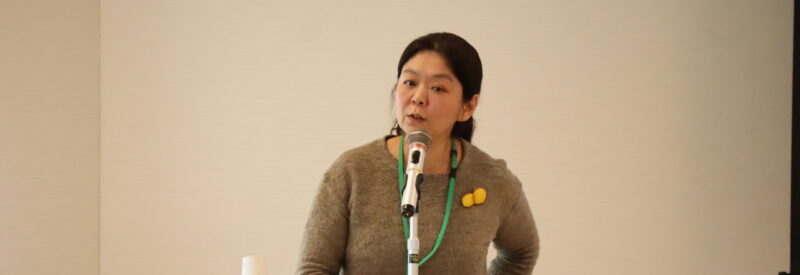 初めに登壇したのは、元寺小路教会信徒の園部英俊さん。園部さんは、旧仙台教区サポートセンターのスタッフで、現在はチーム・カリタス仙塩(せんえん)のメンバーとして、地域での寄り添い活動を続けている。チーム・カリタス仙塩は、仙台市と塩竈(しおがま)市にある八つの小教区からなる支援グループとして2017年に活動を始めた。月に2回、カリタス石巻ベースが行ってきた「いこいの場」で、手芸やゲーム、ダンス、季節の行事などを通じ、地域の人々と近況を語り合う活動を続けている。
