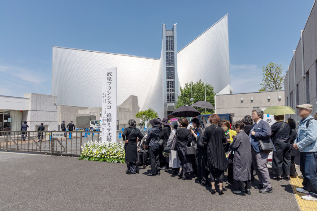 前日26日のバチカンでの葬儀ミサに続き、日本の教会として執り行う追悼ミサ。晴天に恵まれたこの日、大聖堂に隣接するカトリックセンター内に設けられた待機スペースには、午後1時半の受付開始前から長蛇の列ができた。