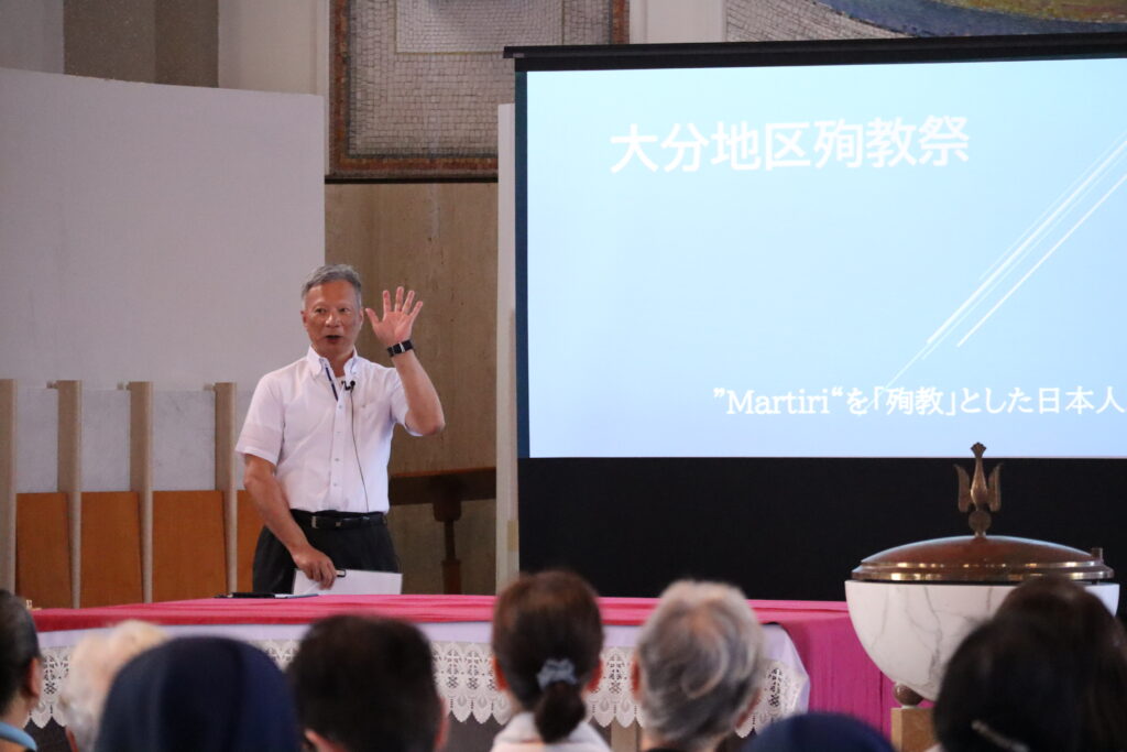 この日の殉教祭では、大分キリシタン史の解説と五つのキリシタン史関連の行事を紹介するプレゼンテーション、記念ミサが行われた。参加した220人余りの司祭、修道者、信徒らは、大分のキリシタン史を学びながら各行事が記念することの意味を確かめ、ミサをささげて郷土の殉教者たちに思いをはせた。