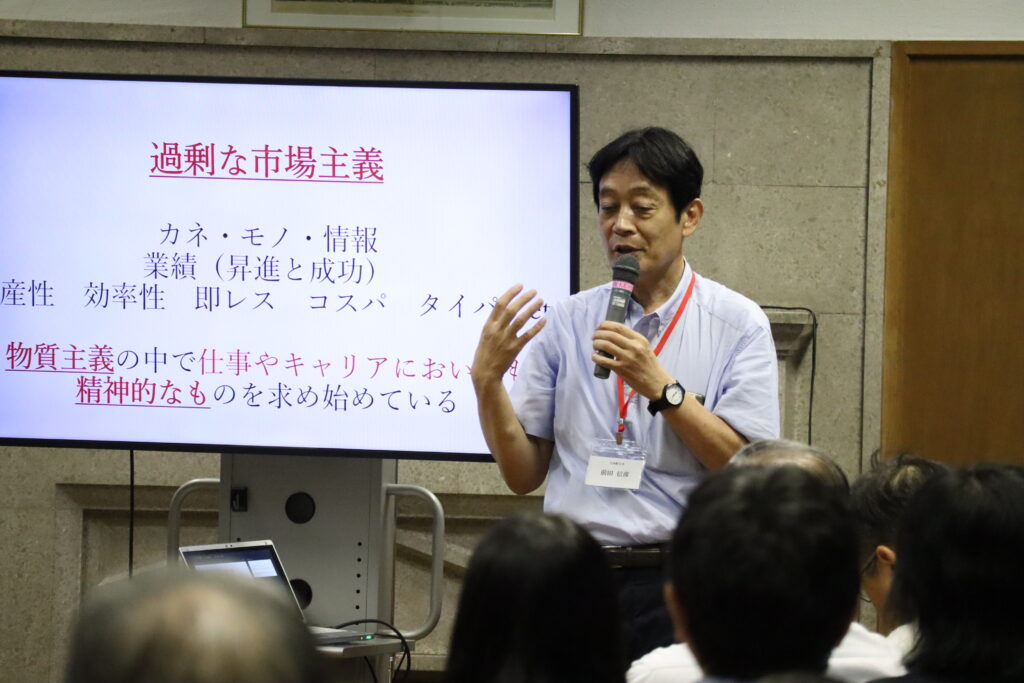 前田教授は、社会科学の領域では、スピリチュアル資本は「無形の資本」であり、物質的な富や権力などの資本に特別な意味や価値を吹き込むもの、と定義されていると説明。そしてキリスト教などの宗教的な制度や資本に重なる部分も多いが、特定の宗教に限定されるものではないと話した。