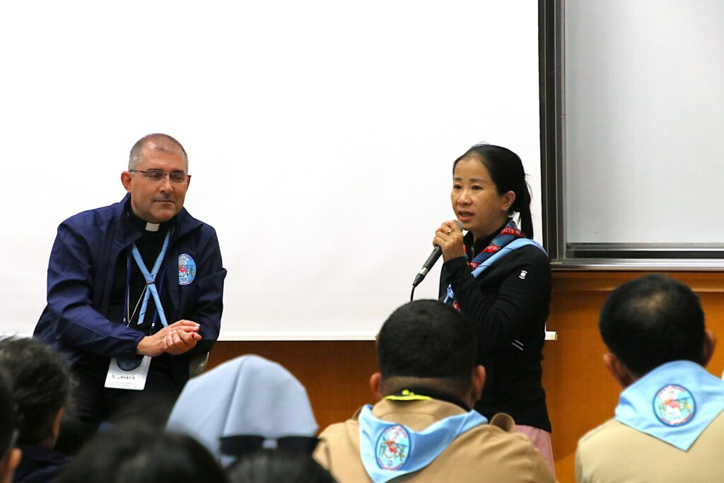 ICCSアジア太平洋地域会長のフランシスカ・ボンさんは、ICCSがスカウト活動を通じて社会変革を推進するために立ち上げたプロジェクトに言及。国・地域ごとに司祭1人、青年リーダー1人、そしてチャプレンまたは精神的指導者1人からなるチームを指名してこのプロジェクトを進めていくと説明した。同地域の青少年育成プログラムについても紹介した。
