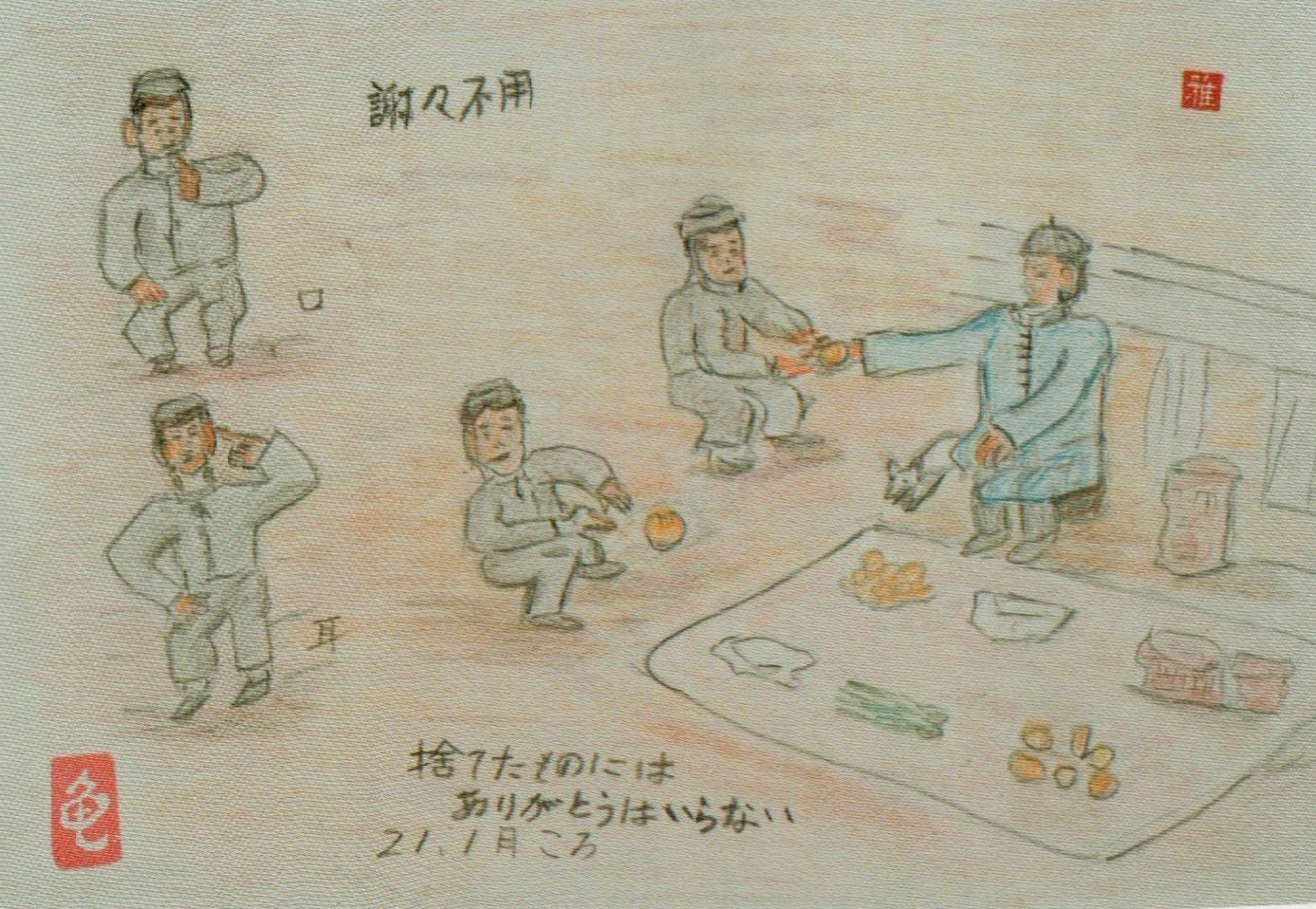 満州に来たばかりの時、近所に住む少年、徳清(トクショウ)君とよく遊んでいたため、露店の高齢男性が話す中国語が黒田少年には理解できた。