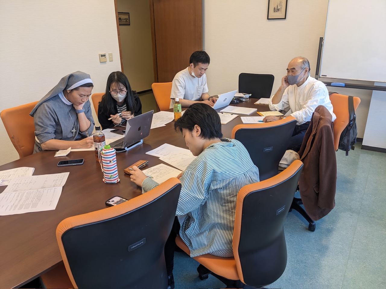 シスターは、教会が遠い、実習先が教会に行かせてくれない、通うにも交通費がかかりすぎるなどの理由で信仰生活を営むことが難しいベトナム人グループに、夜、オンラインで祈りや聖書の分かち合いをしている。