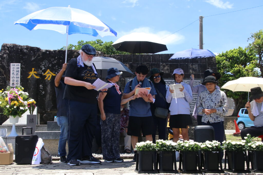 2025年 沖縄慰霊の日 司教メッセージ「沖縄を戦場から非武装中立平和特区へ」(教区報「南の光明」2025年6月号3ページ目)は、バーント司教と共に、同教区の男性、女性、青年、子どもの代表がそれぞれの「心」としてリレー形式で読み上げた。