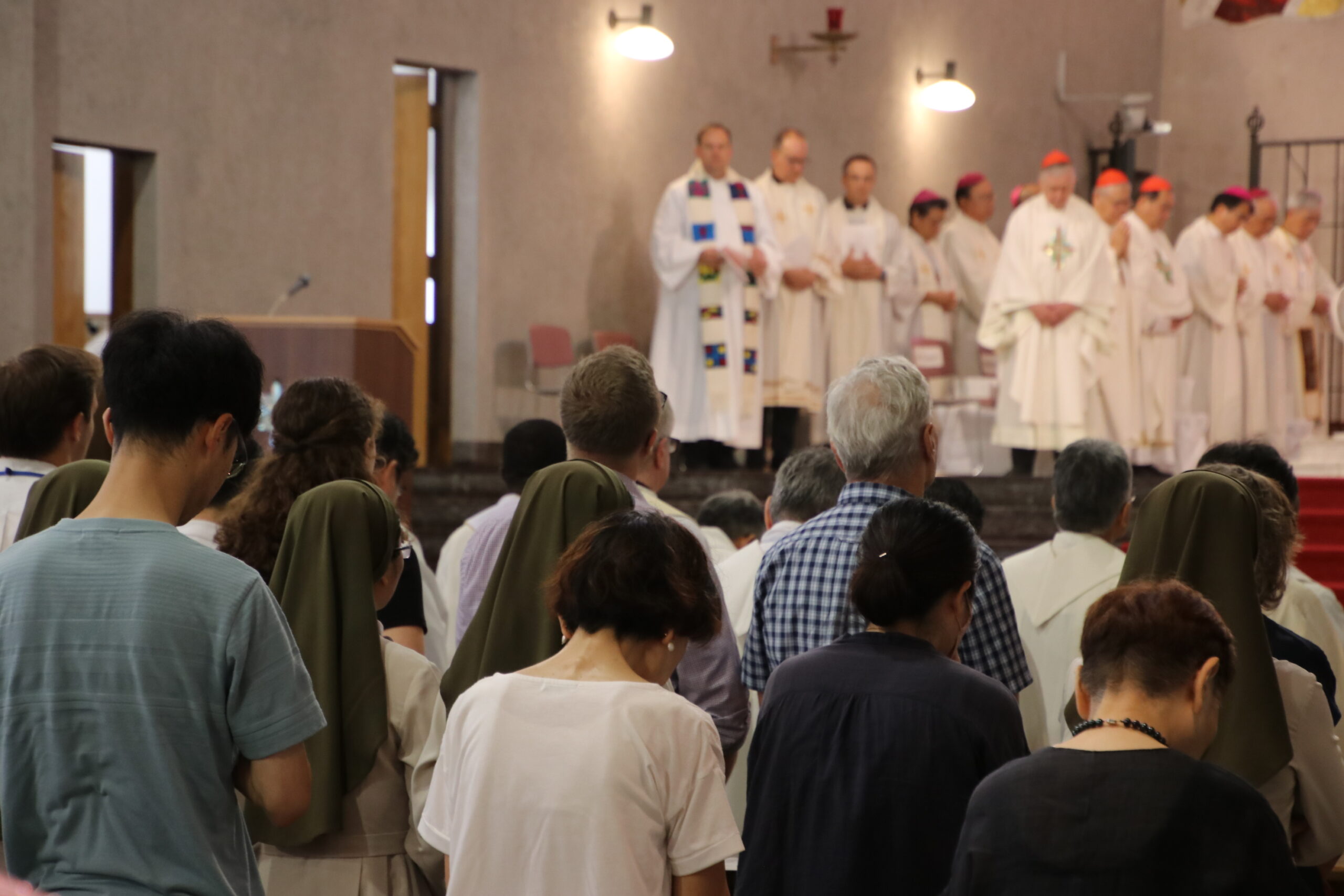 広島に原爆が投下されて80年となった8月6日、米国、韓国、日本の司教たちが約200人の信者と共に、広島市の世界平和記念聖堂で「原爆とすべての戦争の犠牲者のためのミサ」をささげた。原爆投下時刻の8時15分には聖堂の鐘が鳴り響き、参加者は共に黙とうをささげた。