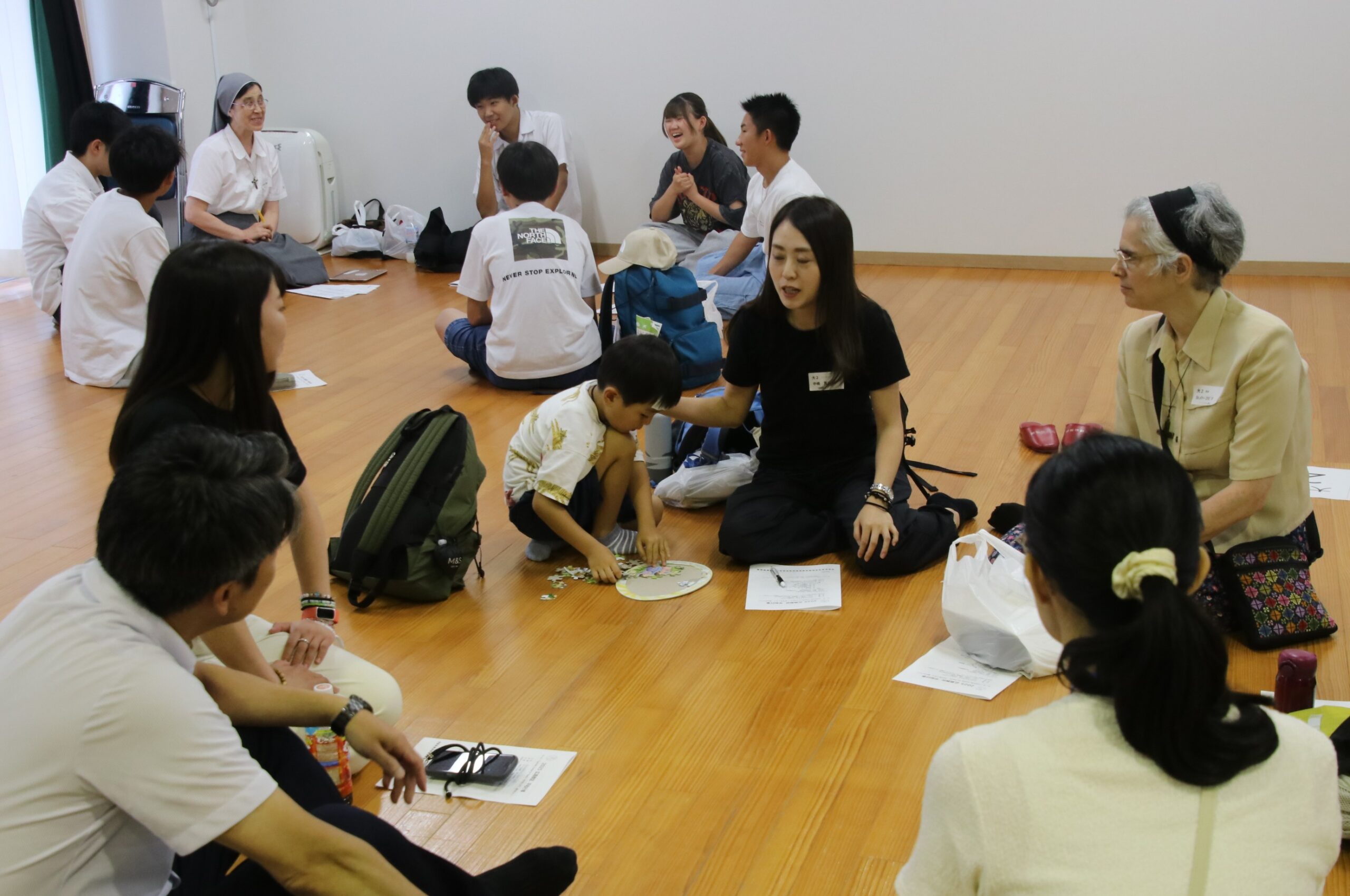 広島教区青年活動企画室が準備を担当。当日は中高生を中心に、親と一緒に来た学齢未満の子どもから高齢世代、また巡礼者も含めて100人以上が集い、講師の松浦悟郎司教(名古屋教区)の話を聞いた後、小グループごとに分かち合いを行った。