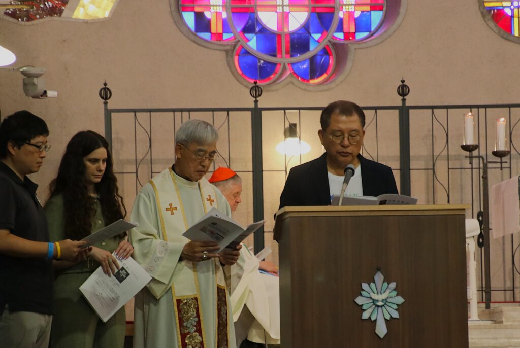 5日夕刻は、日本カトリック司教協議会会長・菊地功枢機卿(東京教区)主司式による「平和祈願ミサ」(→関連記事)が幟町教会で行われ、約500人が集った。駐日教皇庁大使が「教皇レオ14世からの被爆80年にあたってのメッセージ」(→関連記事)を紹介した。教皇レオ14世はメッセージで、「まことの平和」のために「武器を手放す勇気」が求められると呼びかけている。