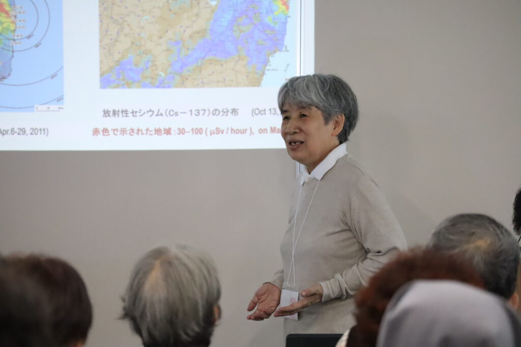 分科会③では、福島大学共生システム理工学類特任准教授の高瀬つぎ子さんが、福島の原発事故で放出された放射性物質による環境汚染と除染、原発廃炉作業の見通しと作業従事者の労働環境、発災後の避難の困難さなどについて、自ら参加した調査のデータなどを示しながら解説した。