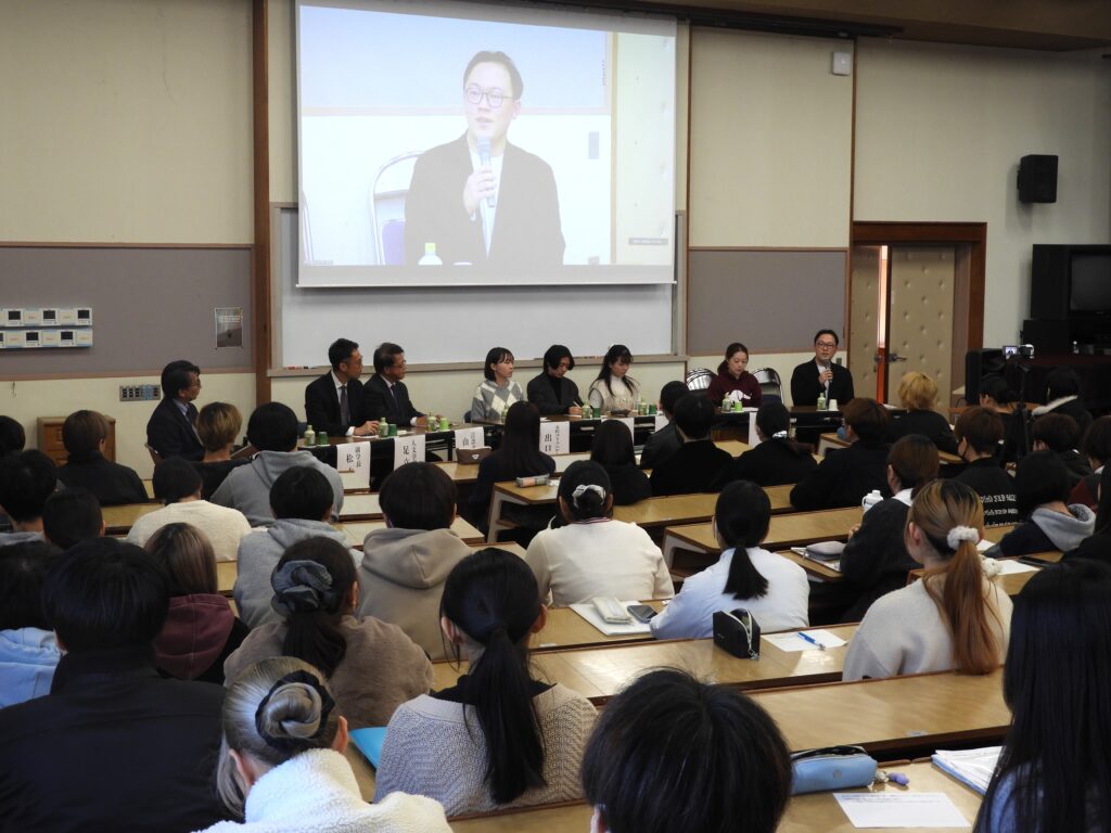 パネルディスカッションの発言者に耳を傾ける学生たち( ©長崎純心大学)