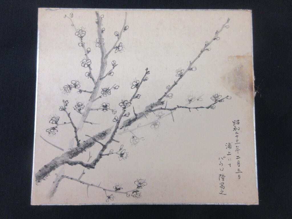 写真下は永井博士が中田神父の口癖の「よかばい」にかけて描いた梅の絵。