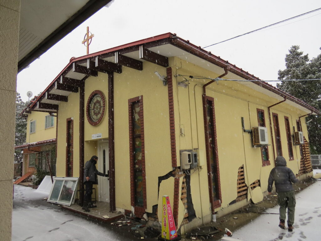 翌2日朝、片岡神父は下道(したみち)を使い、七尾教会を訪ねた。数年前に修繕していた建物の被害は軽微だったが、聖堂も司祭館も棚から落ちた物などが床一面に散乱していた。