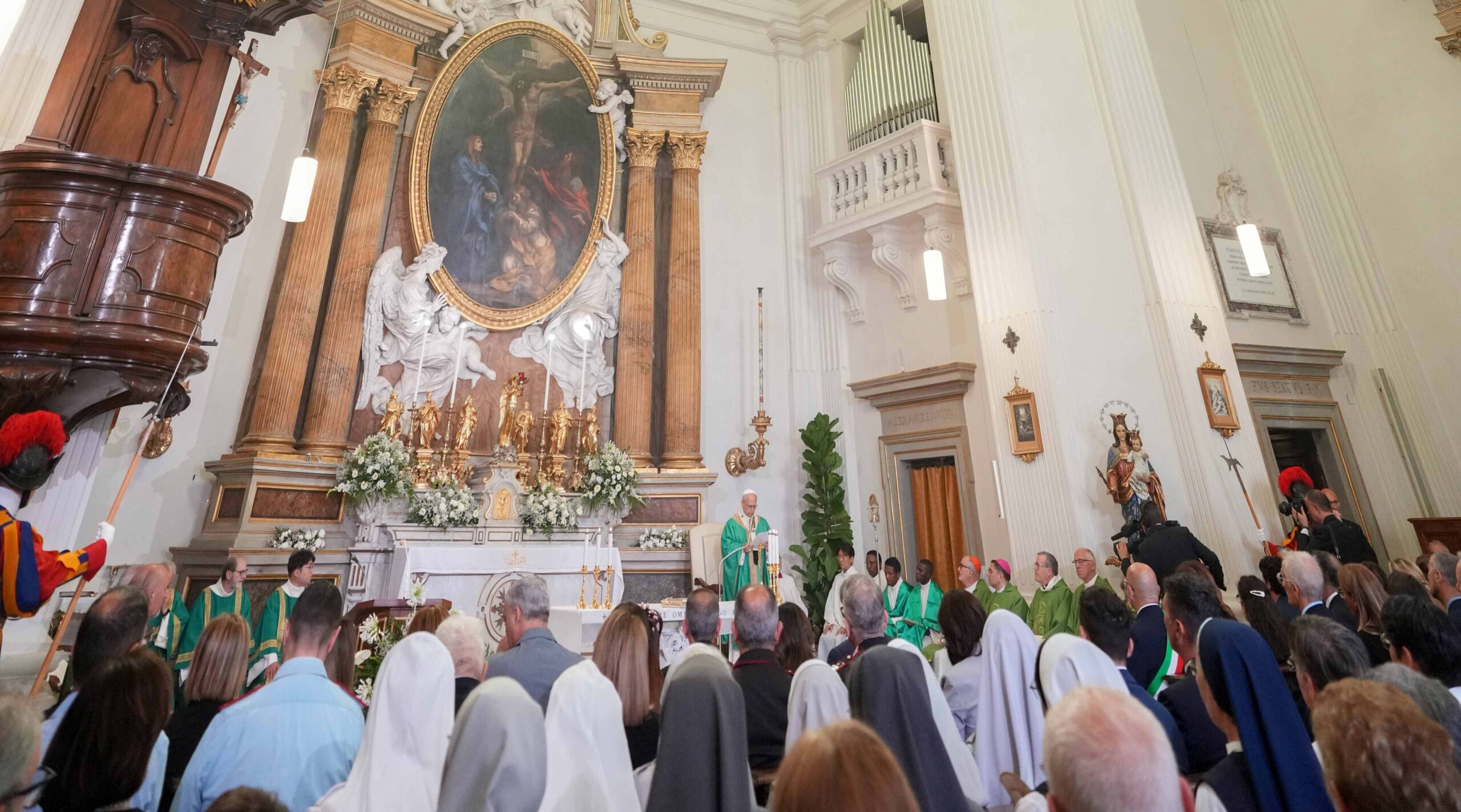 教皇はカステルガンドルフォの教皇夏季別荘から町の中央広場を隔てた小さな教会、ビラノバの聖トマス教会でミサをささげた。教皇は7月6日に短い夏休みのため現地に入っていて、20日まで滞在する。