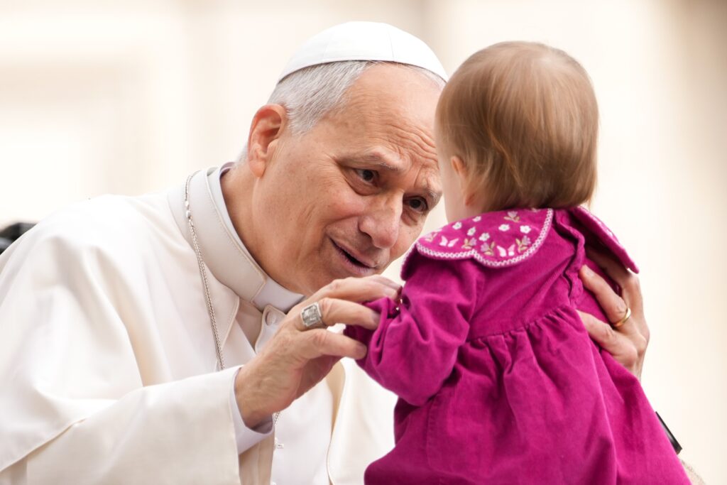 3月11日、ほぼ毎週開かれる一般謁見の前に、バチカンのサンピエトロ広場をパパモービレ(教皇特別車)で巡る中で、子どもにあいさつする教皇レオ14世 (CNS photo/Lola Gomez)
